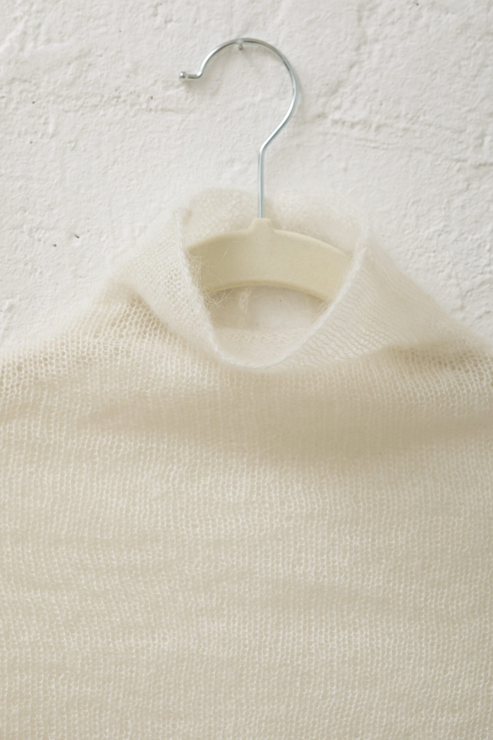Confeccionada por nosotras con una hebra de mohair y seda que le proporciona un aspecto sofisticado, perfecto para quien busca una prenda única y sostenible.