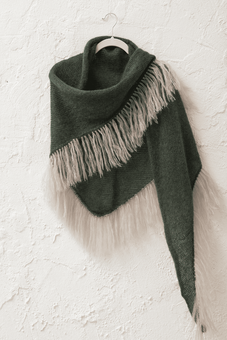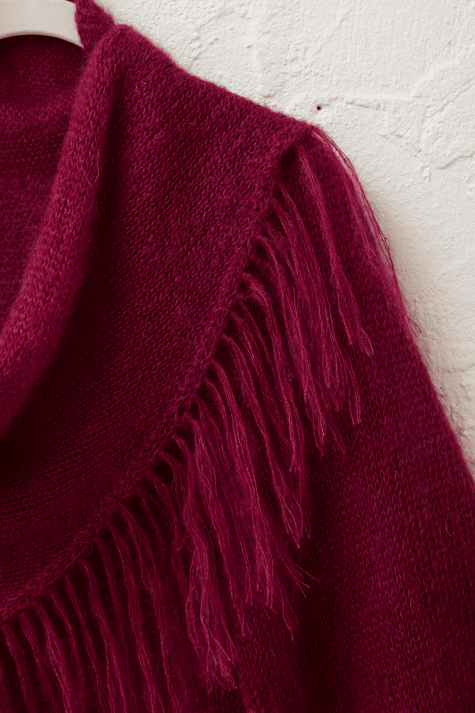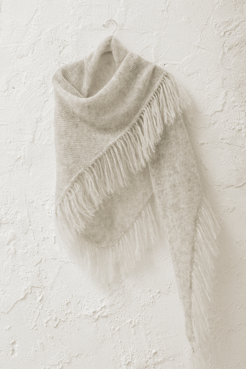 Chal con flecos de punto, ideal para bodas o fiestas. Confeccionado a mano con mohair y seda, es la elección perfecta para invitadas, madrinas o novias que buscan una prenda elegante, única y sostenible. Su textura suave y ligera lo convierte en una prenda ideal tanto para bodas de invierno como de entretiempo.